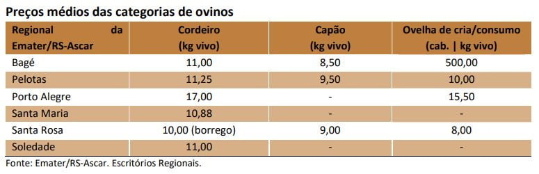 cordeiro para abate no Estado aumentou 2,47%, ficando em R$ 10,77/kg vivo.